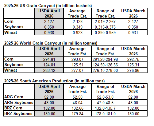 As is often the case, the April WADE report was an overall sleeper. The USDA made few substantial changes to their supply demand numbers this month. Instead, they chose to kick the can down the road to the May reports, which are typically more closely watched because it includes their initial 2026-27 crop year estimates.
