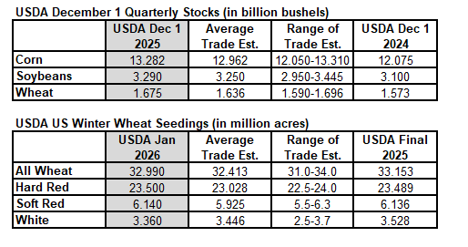 US winter wheat seedings totaled 32.990 million acres, which was nearly half a million more than trade expected. December 1st US wheat stocks were at the high end of the trade range. US wheat carryout increased 25 million bushels to 926 million bushels. World wheat carryout increased by 3.4 million tons. Global wheat supplies remain abundant. This took the wind out of the sails of the KC Wheat Sell Signal on its first day.
